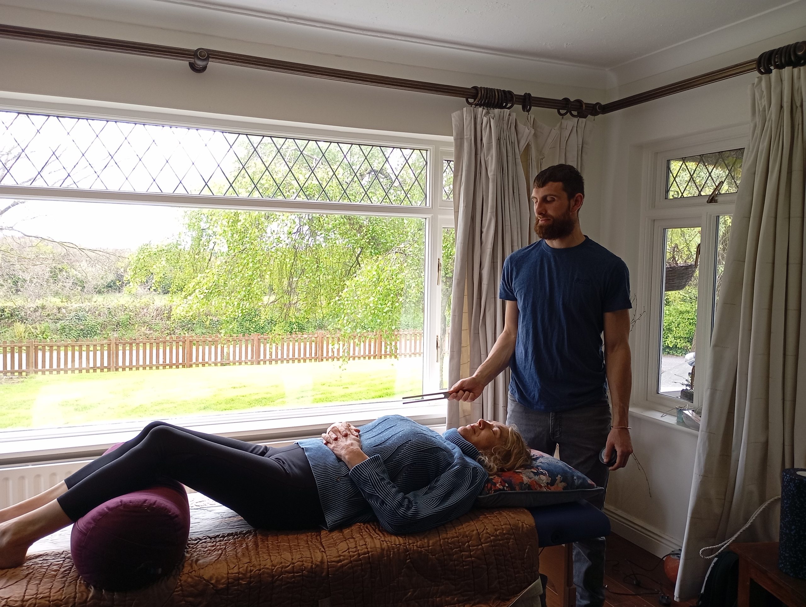 I noticed my body was not able to relax at the start of the session, I was fidgeting and couldn’t find a comfortable position to lie in. After a short while with Robbie using his tuning forks, and even just his own presence, I felt much more relaxed. I was able to settle in my own body and find my centre.I also really enjoyed the vocal element of the session. Noticing some sounds were harder for me to make than others. There is a sense of relief or something when you fully commit to making a sound with no thoughts in your head. One of the sounds even seemed to adjust my neck as lay on the bench.I also enjoyed the laughter and good vibes with Robbie, you leave feeling happy and what more can you ask for?”
